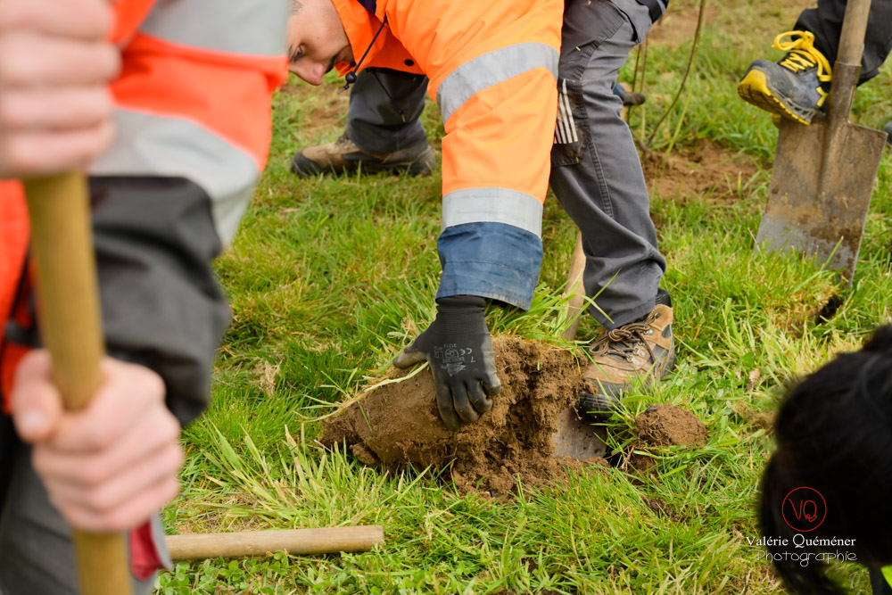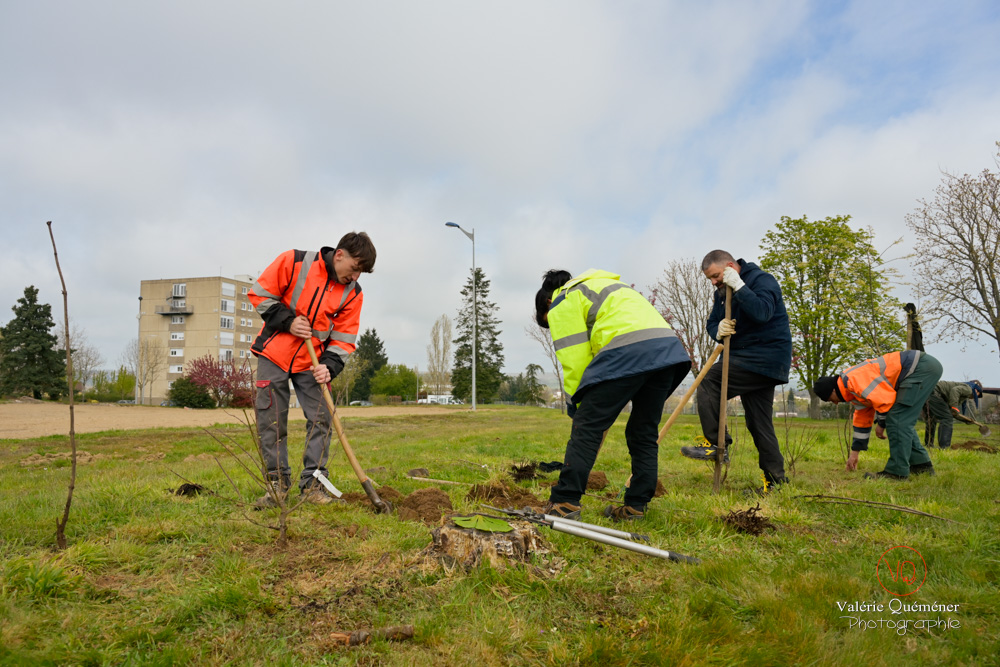 Si l’artificialisation des sols est une des causes principales de l’extinction de masse de la biodiversité, la destruction d'un bâtiment a également un impact. Ainsi, il est désormais obligatoire de conserver les animaux observés au préalable en lui reconstituant un nouveau cadre favorable. C'est pourquoi, suite à la destruction d'un immeuble OPAC, le service des espaces verts a organisé un chantier de plantation de haies de type bocagère pour répondre à un nouvel habitat et faire prospérer cette biodiversité. Cinq étudiants du CFPPA de Charolles et dix autres jeunes de la MFR d'Anzy-le-Duc, sont venus prêter mains fortes pour installer les 160 cornouillers sanguins, noisetiers, prunelliers et sureaux noirs qui serviront également de brise-vent.