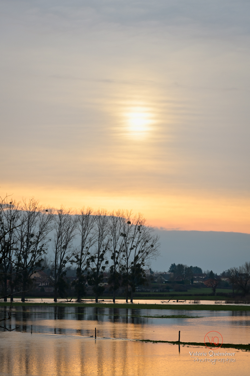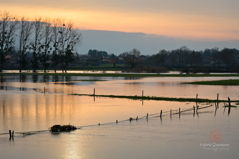 Pourtant situé loin de la mer, un paysage de Bourgogne se transforme chaque année, avec le débordement de l'Arroux, qui vient inonder la plaine de Digoin. En 2026, l'affluent de la Loire ne fait pas exception, à la différence que cette fois, on a pu assister à plusieurs marées, de la période du 12 au 23 février. Souvent grises, quelques lumières ont permis d'observer des nuances de couleurs se refléter dans l'eau.